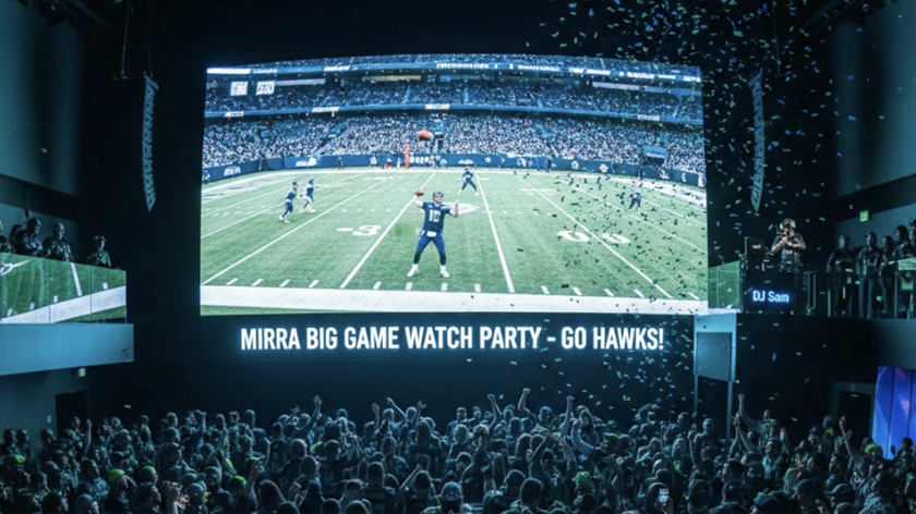 Get ready to experience The Big Game like never before, right here in Bellevue! This year, for the ultimate watch party experience, we’re highlighting Mirra at Lincoln Square South. Imagine cheering on the Seahawks with fellow fans while immersed in the game on the Pacific Northwest’s largest 8K LED screen – a colossal 1,750 square feet of pure, high-definition action! Mirra is pulling out all the stops for their "Big Game Watch Party," promising an electric atmosphere that’s absolutely free to join, with an after-party featuring Seahawks DJ Sam to keep the energy soaring whether our Hawks win or lose (but let's be real, they're winning!). Get ready for an unforgettable Game Day Sunday, and let's go, Seahawks!