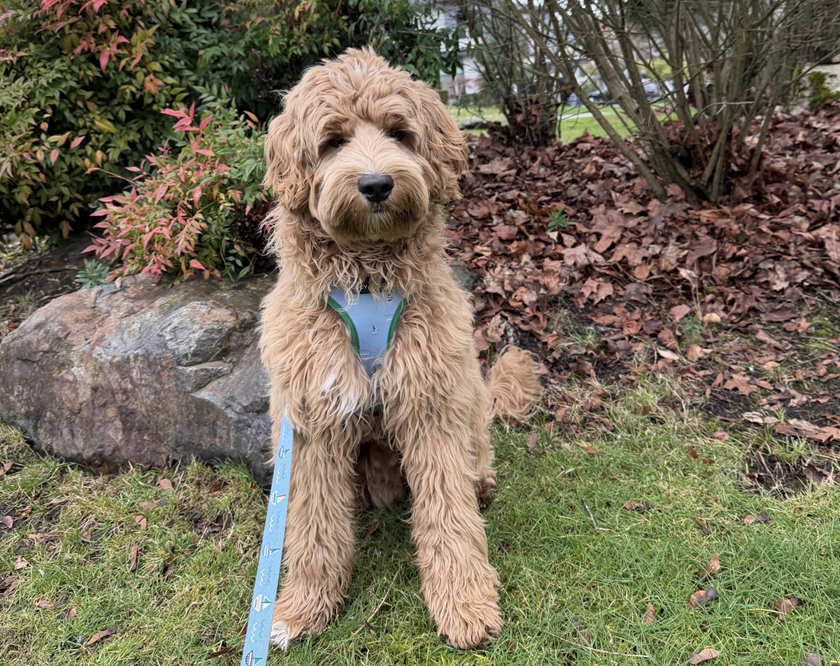 Everyone, say hello to Gus, our adorable 7-month-old Goldendoodle! If you’re looking for the way to Gus’s heart, just follow the snacks. He’s a dedicated foodie who spends his days eagerly counting down the minutes until breakfast, lunch, and dinner. When he’s not dreaming of his next meal, you can find him social butterfly-ing around the community, making new friends, and playing with his absolute bestie, Jimmy. At home, Gus is a professional at tug-of-war and fetch, but he always makes sure to leave plenty of time for his favorite hobby: sweet-talking his humans into endless belly rubs. We are so lucky to have this cute bundle of curls as part of the Stokely family!